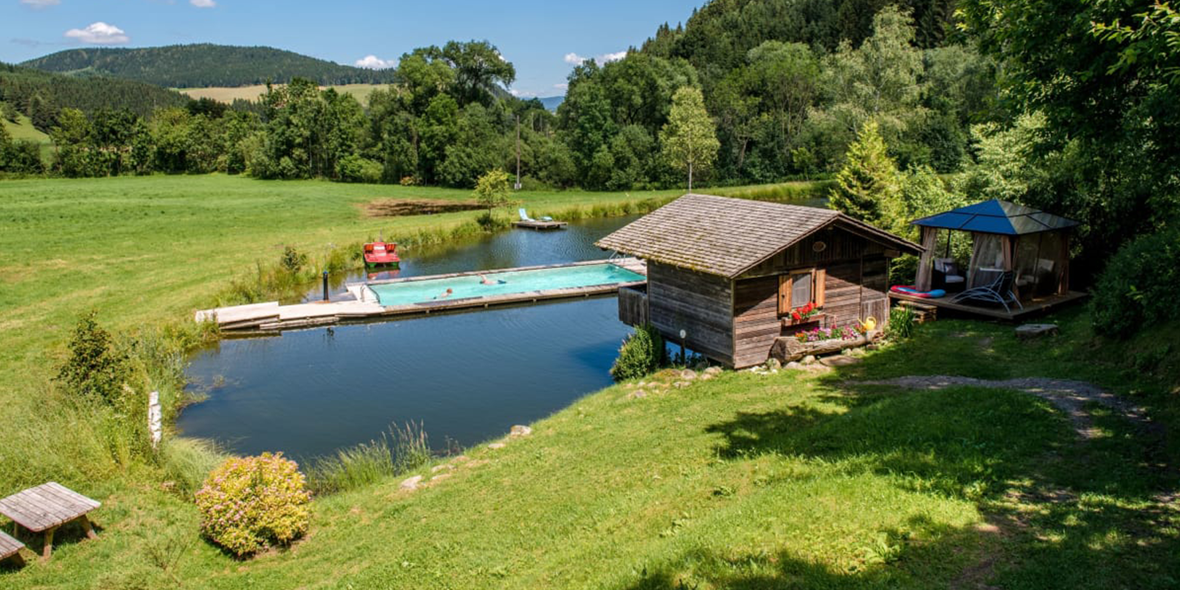 Der Spielplatz mit Trampolin ist von jeder Seite her einsehbar, Sie haben Ihre Kleinen unter Sichtweite und können in der neuen Wellnessoase beruhigt relaxen, der beheizte Swimmingpool intergriert im Naturbadeteich ein Spaß für Groß und Klein lockt mit seinem warmen Wasser ( ca. 28°) auch an kälteren Tagen. (in den Wintermonaten außer Betrieb)